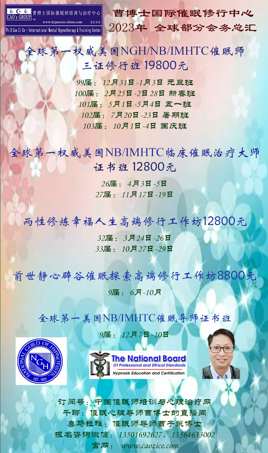 全球一:国际NGH/NB/IMHTC催眠师证书网络版开班-曹子策博士亲授