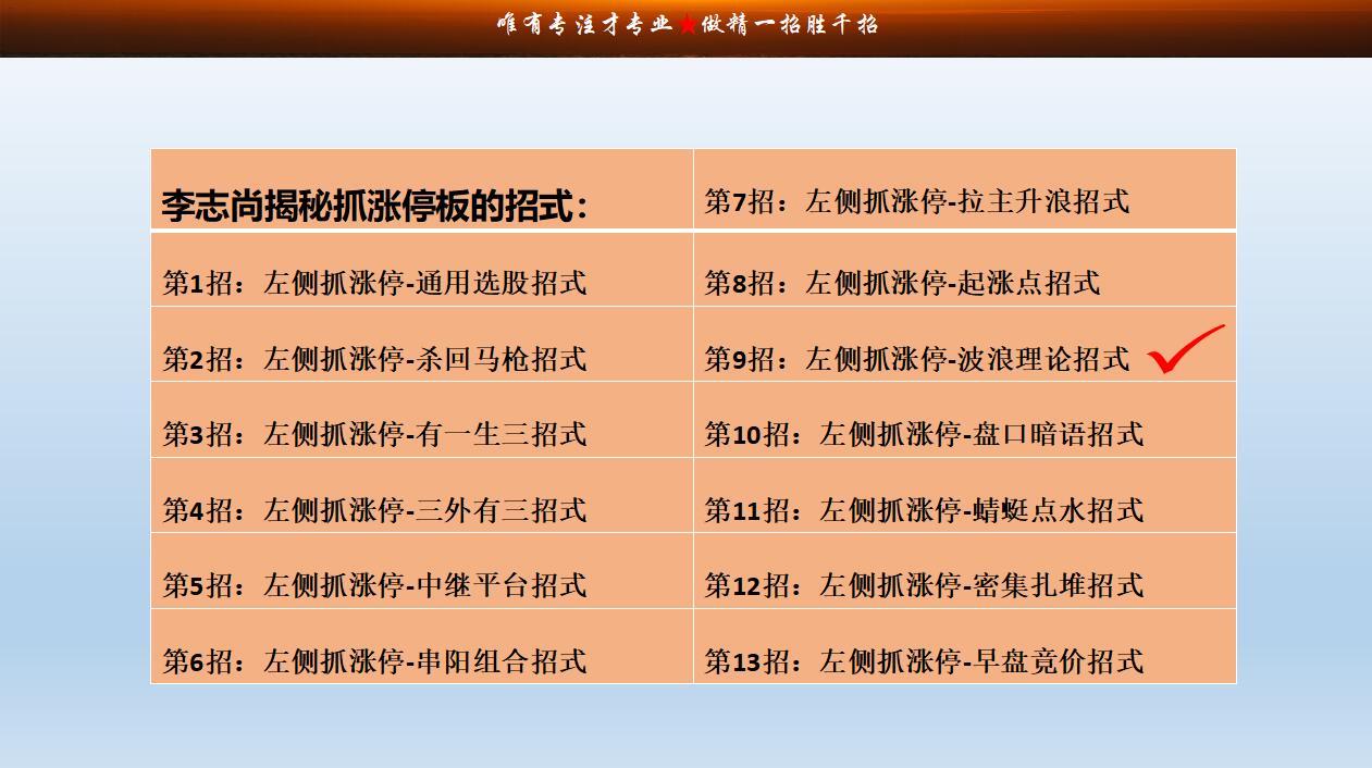 是指在某只个股未来数日内具有涨停的潜力,而寻求提前潜伏买进的技术条件和信号,李志尚老师通过10多年的形态学经验,总结出13个左侧潜伏涨停板的招式。易学易懂,现学现用,立竿见影。
