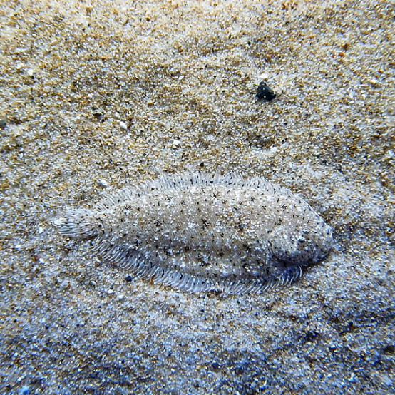 为了保护自己,它们会把自己的身体伪装得跟周围环境一模一样。于是,它们有眼睛的那一侧颜色就逐渐变褐变黑,变得好像底层砂石的颜色,而没有眼睛的那一侧反正没人看到,就还是白色,贴在海床上。