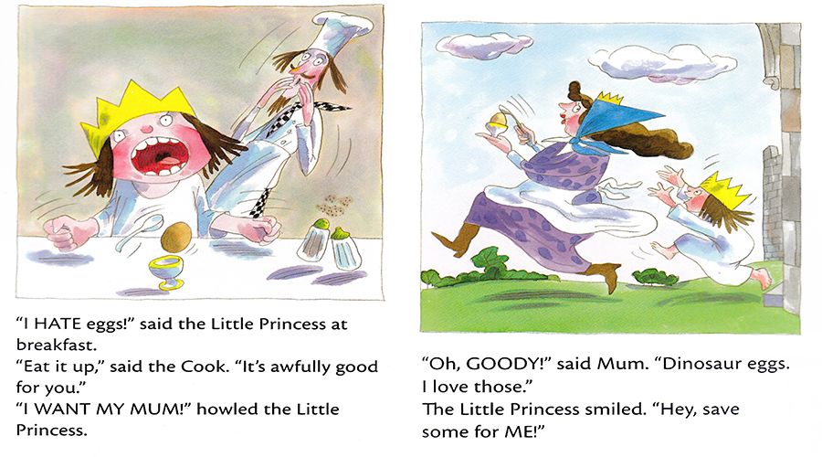 “我讨厌吃蛋!”小公主在吃早餐时说。
