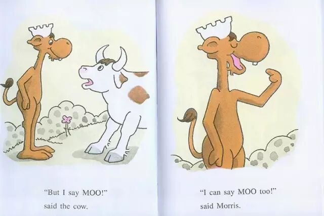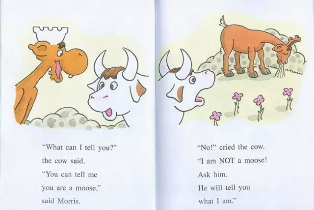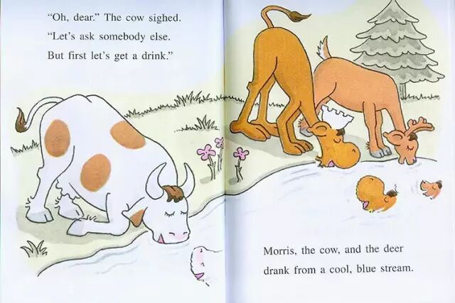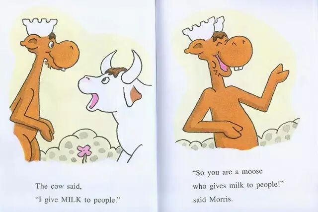 一天, 麋鹿莫里斯看到了一只奶牛。