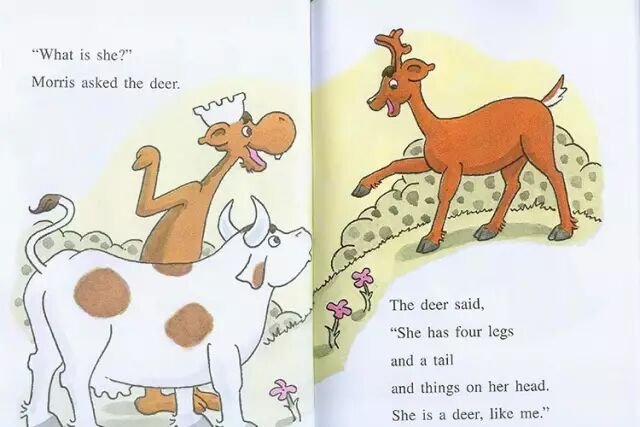 “不!”奶牛大叫起来,“我不是麋鹿!问他,他会告诉你我是什么动物。”