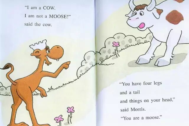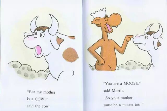 "You are a MOOSE,"said Morris."So your mother must be a moose too!"