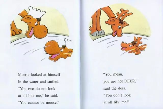 Morris looked at himself in the water and smiled."You two do not look at all like me," he said."You cannot be moose."