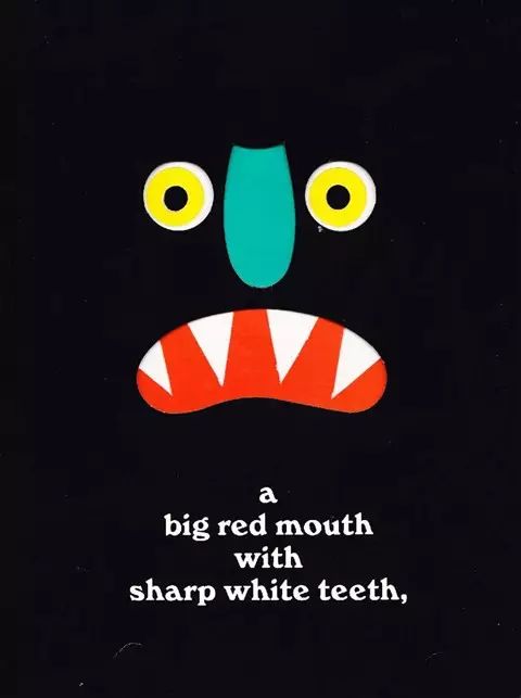 一个有白色尖锐牙齿的红色大嘴巴,