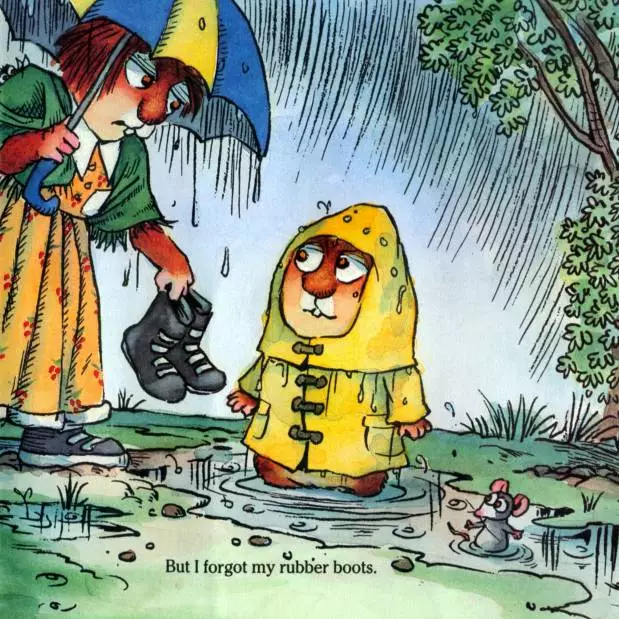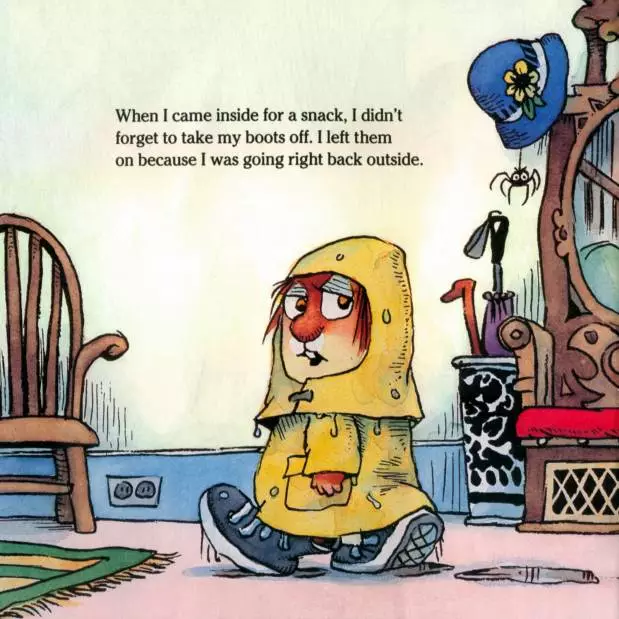 我进屋吃零食的时候,忘记脱雨鞋了。