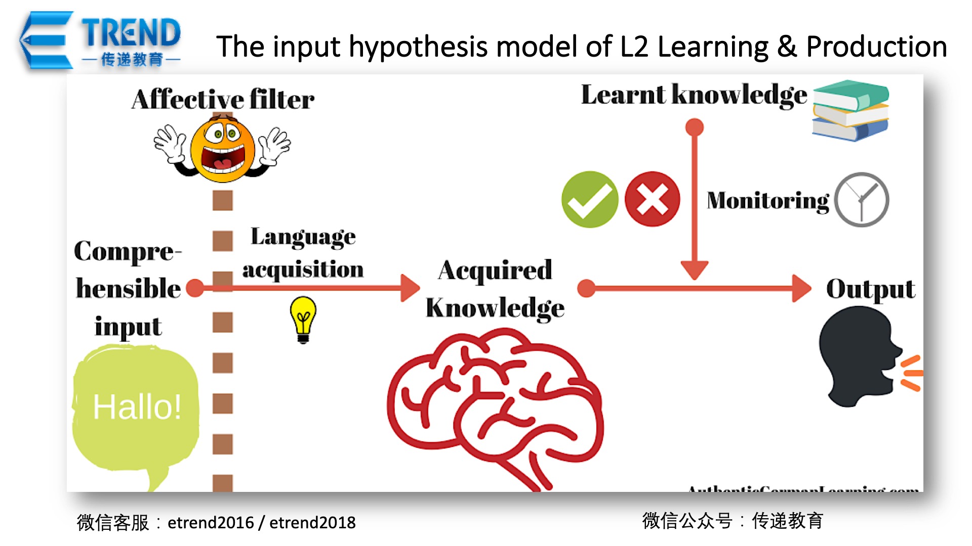 在自然教学法中,语言输出不是强迫的,而是在学生有了大量可理解的语言输入后自发产生的。这种教学方法也努力使学习环境尽可能地没有压力。为了降低情感过滤,学生的工作应该集中在有意义的交流上,而不是形式上;输入应该是有趣的,因此有助于营造轻松的课堂氛围