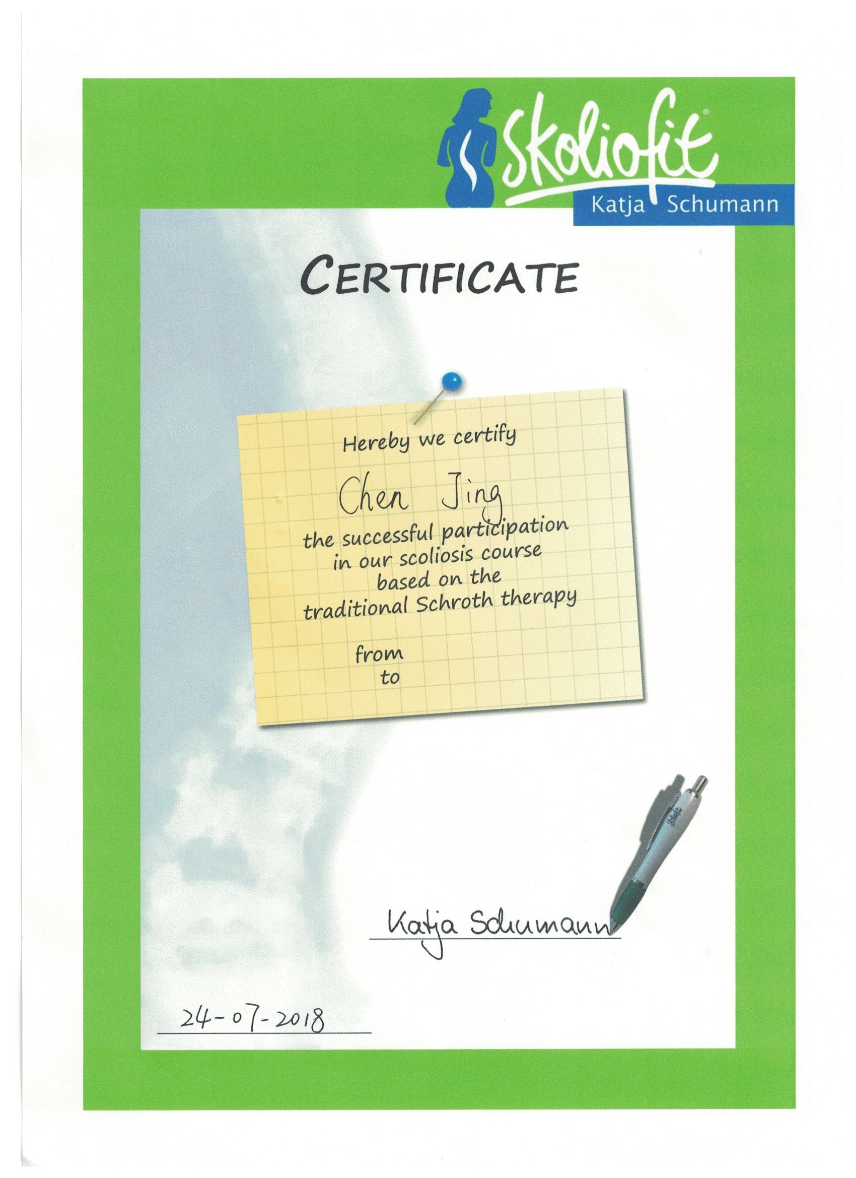 德国施罗斯脊柱侧弯矫正技术(Traditionnal Schroth scoliosis therapy)国际认证
