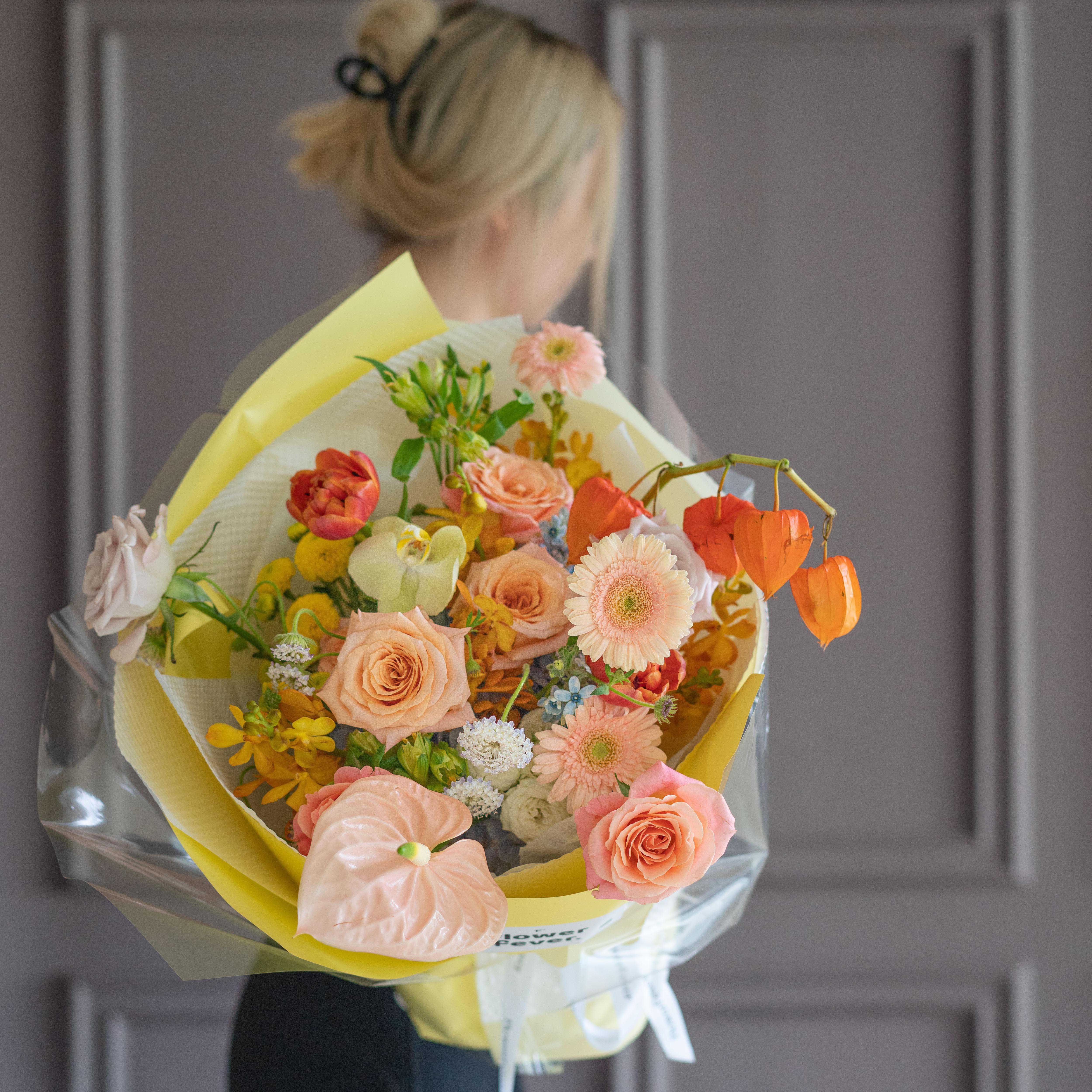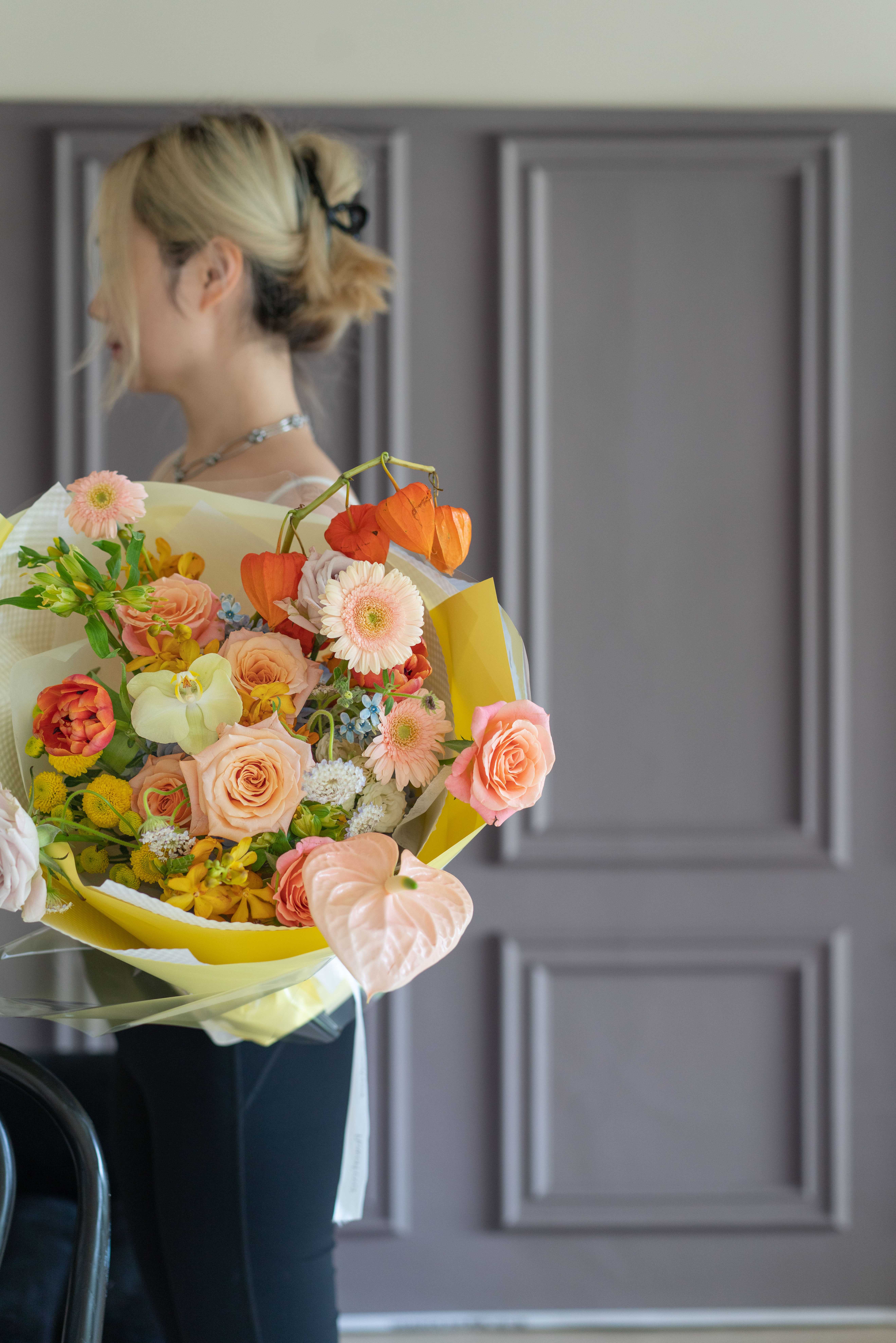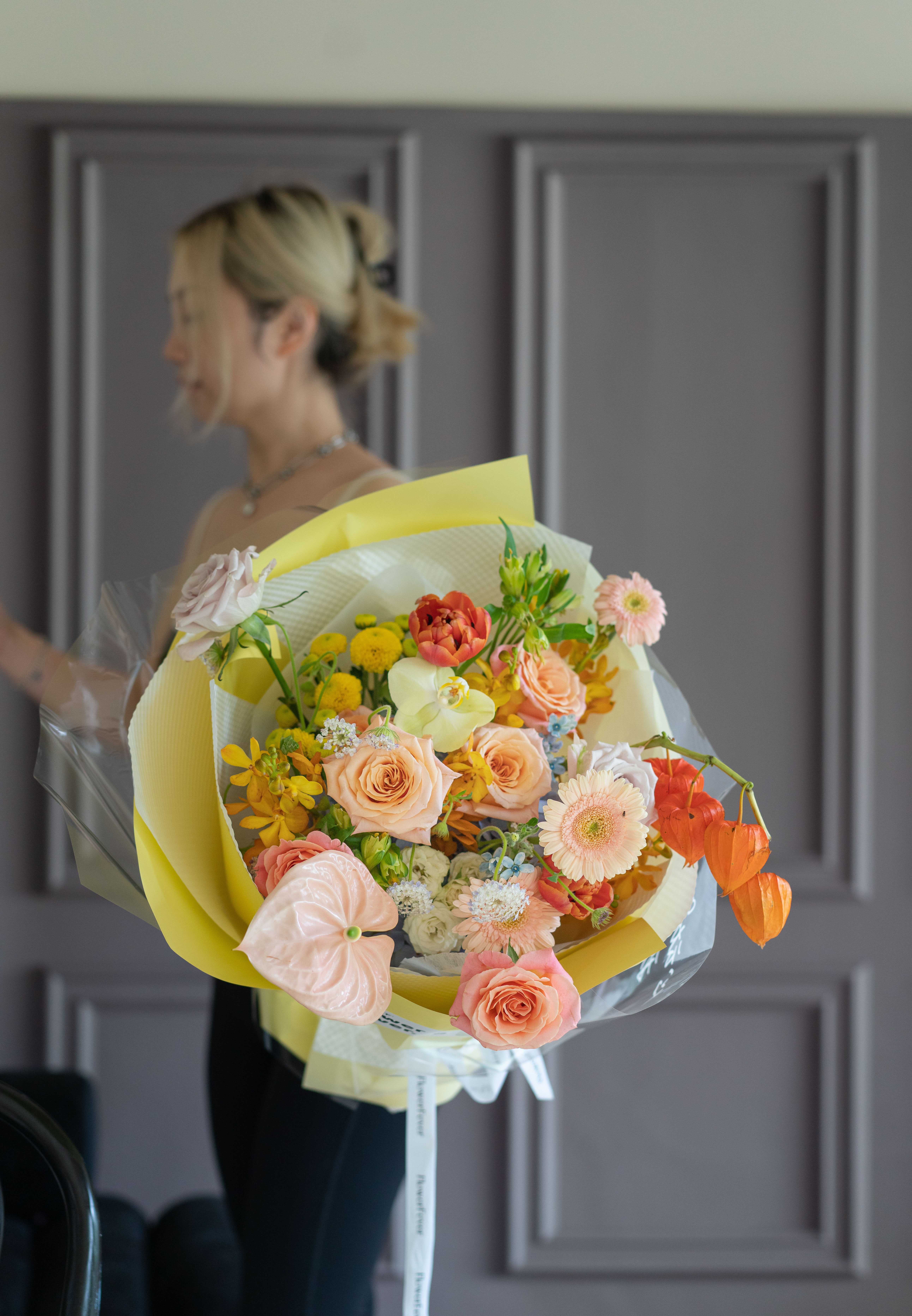6.直播同款黄橙色圆形花束
