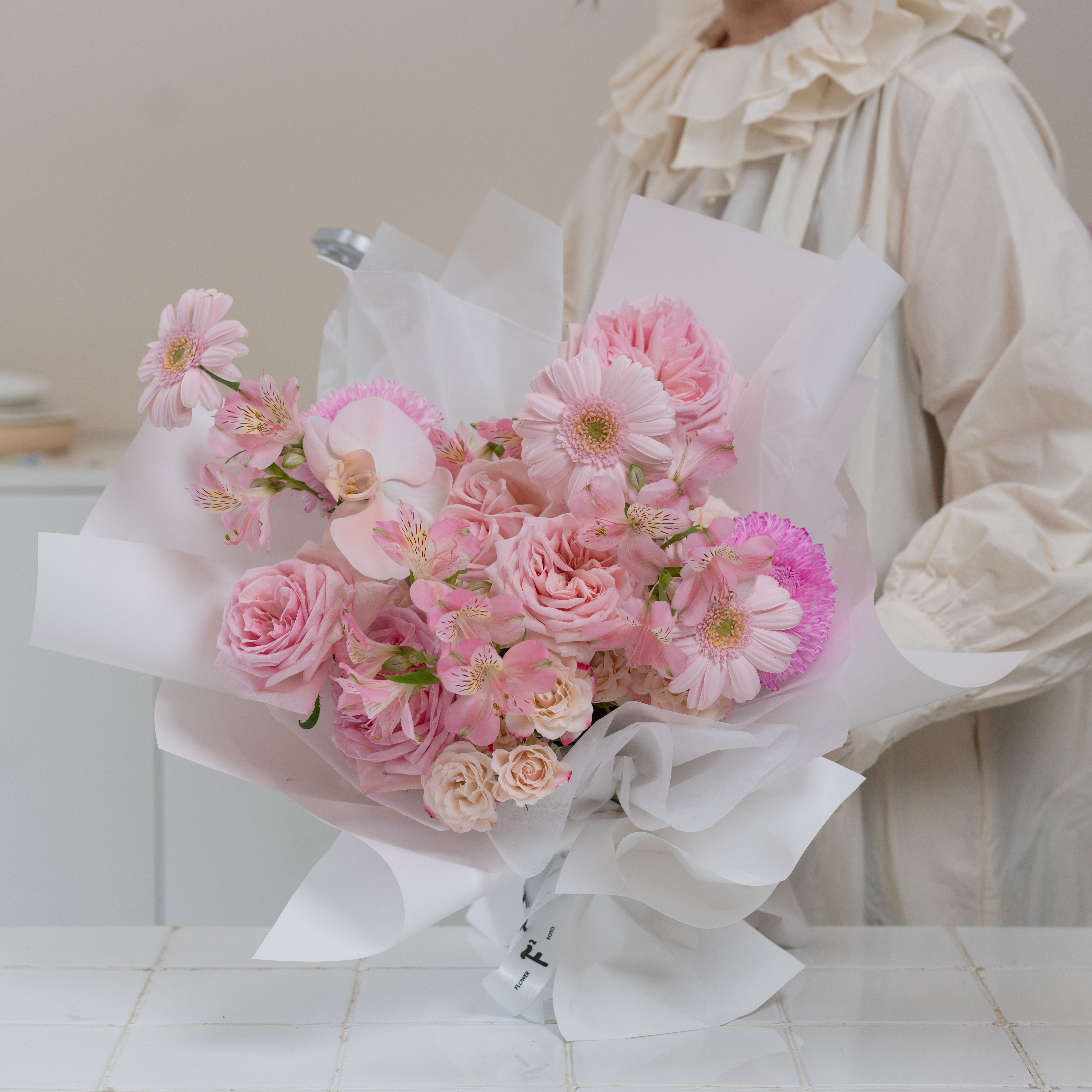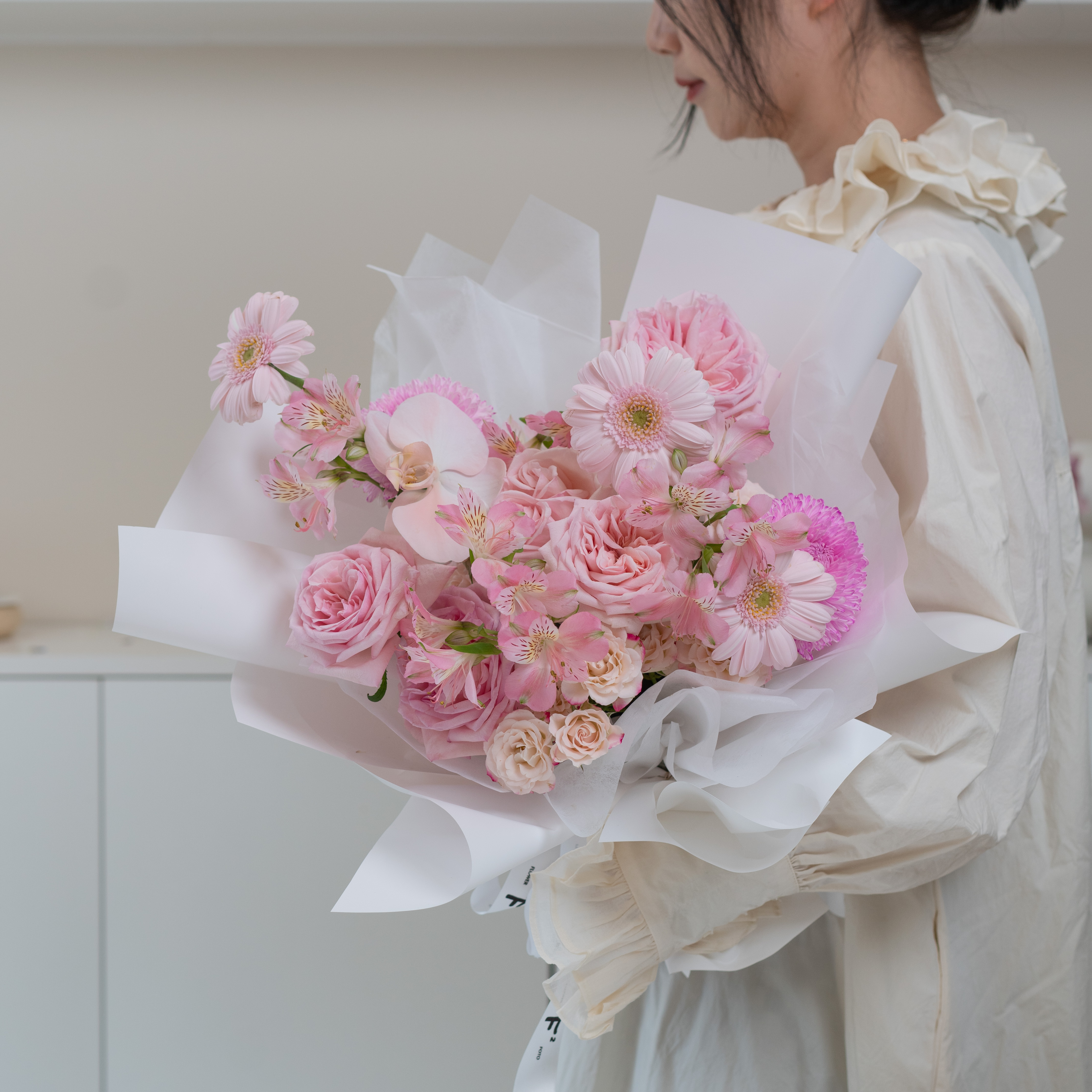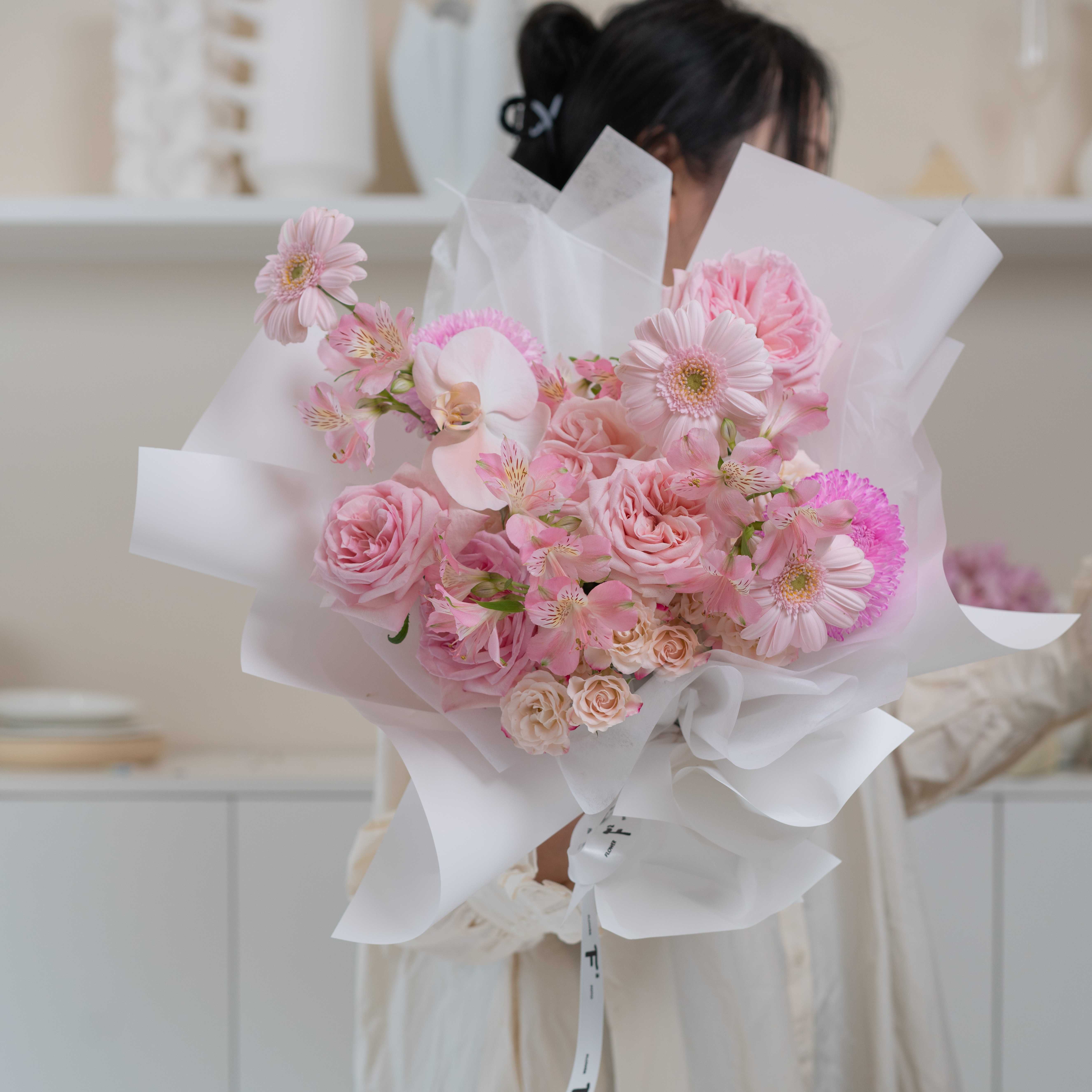 4.粉白色花束(花泥插)