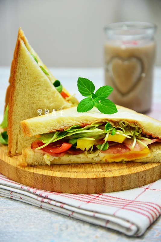 早餐搭配二:培根芽菜三明治+黄豆红枣小米糊