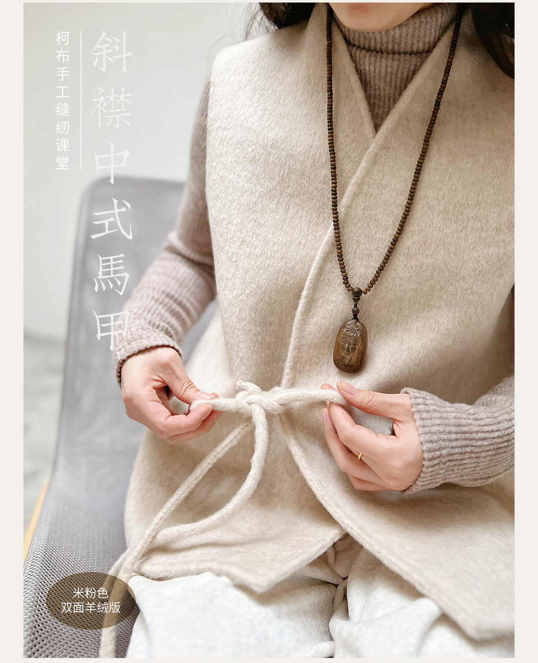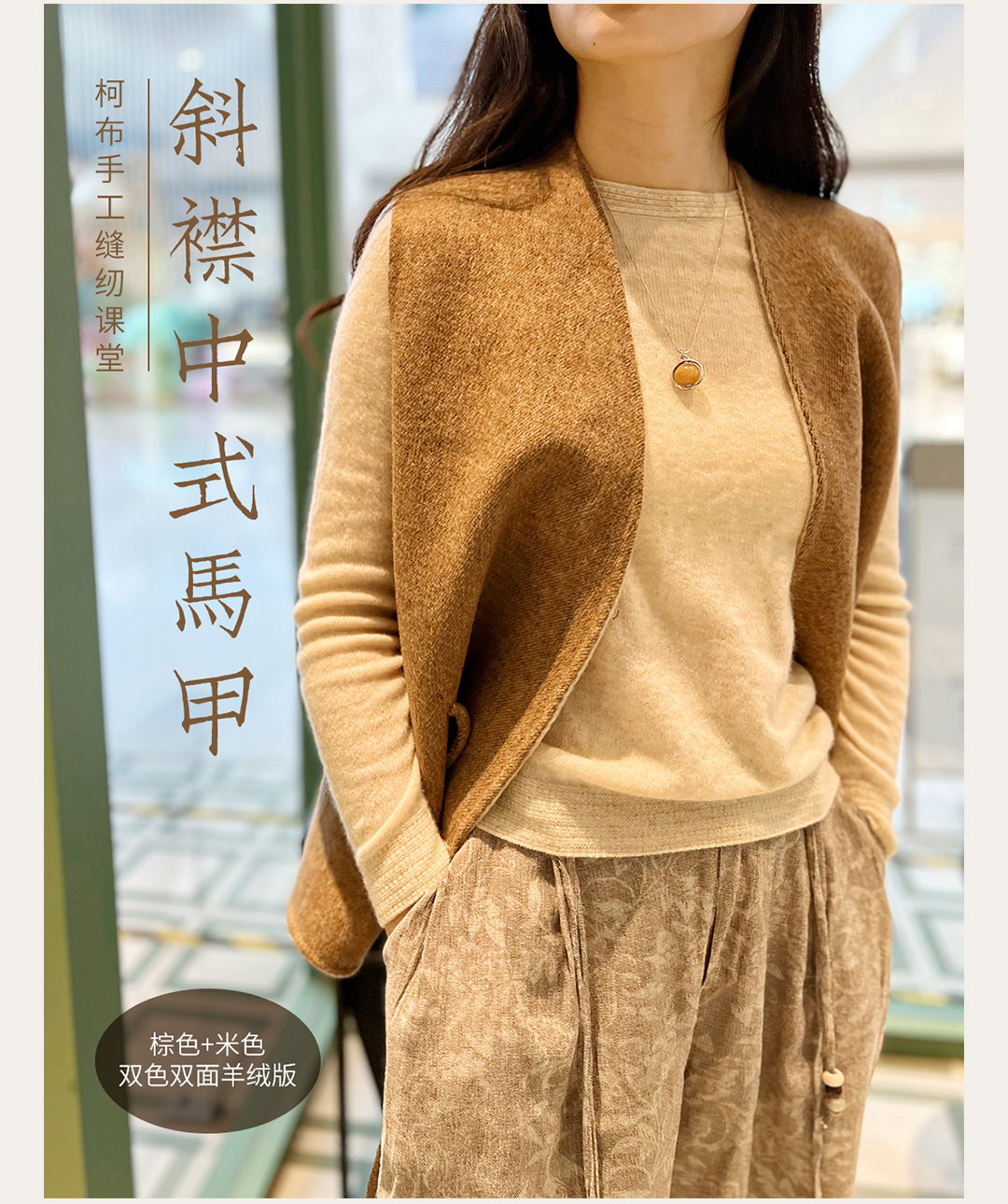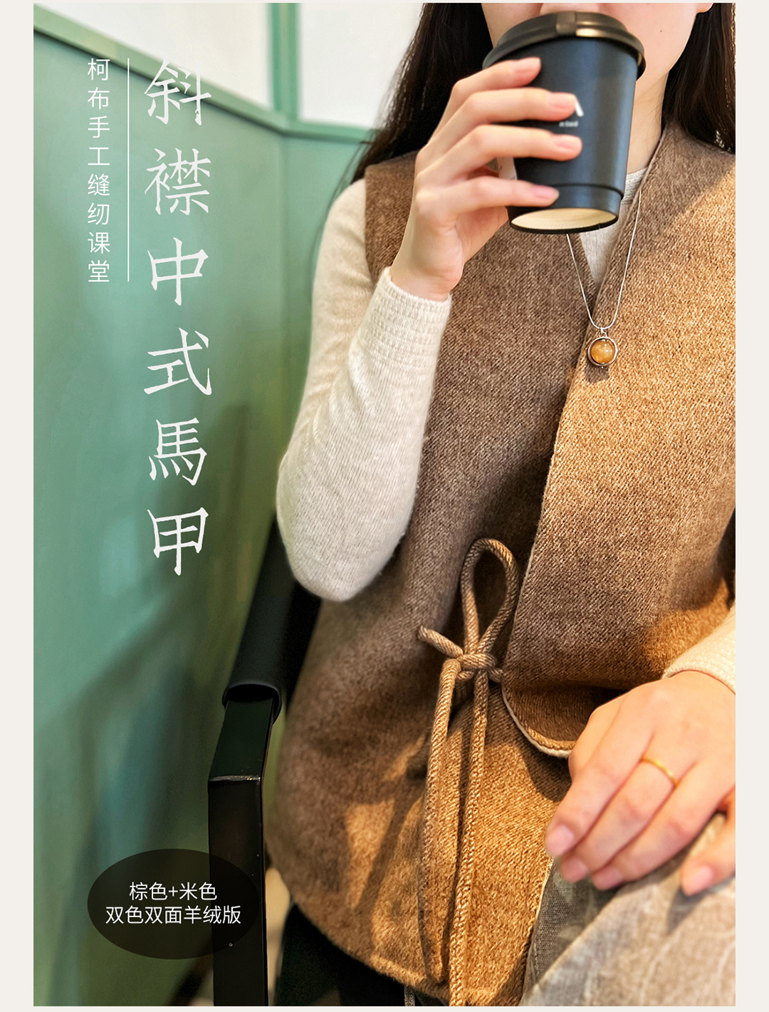 双面羊毛绒中式斜襟马甲